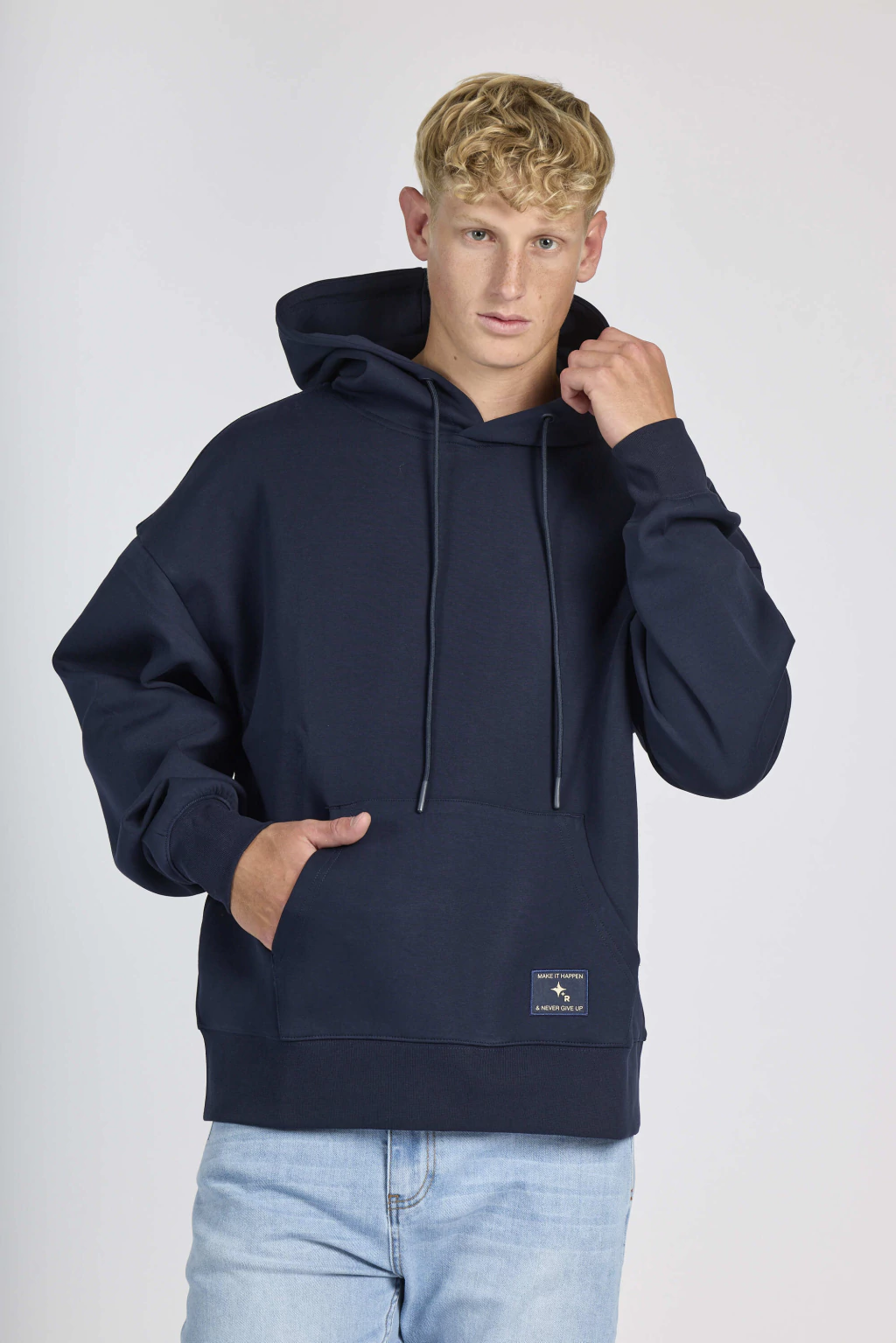 Con un bolsillo canguro funcional y capucha ajustable con cordón regulable.